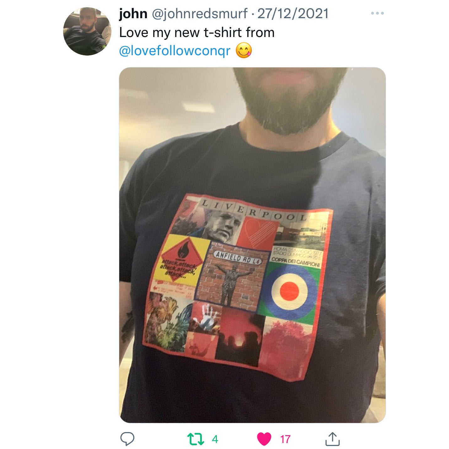 Love Follow Conquer is worn by LFC players, celebrities and 10’s of 1,000’s of Reds from Bootle to Brisbane.