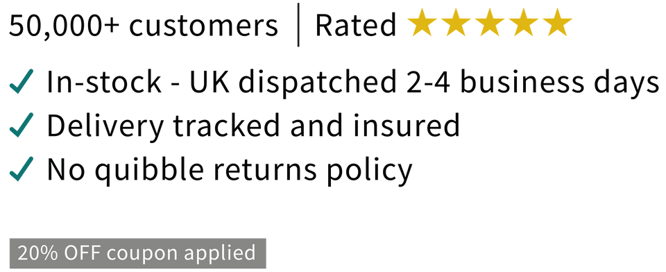 You'll be 100% satisfied with the quality of your order, if not send it back, we have a no quibble returns policy.